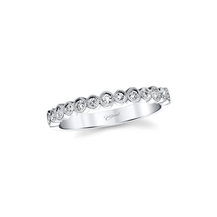 A dazzling band featuring brilliant round diamonds accentuated by milgrain edging. Center stone not included.