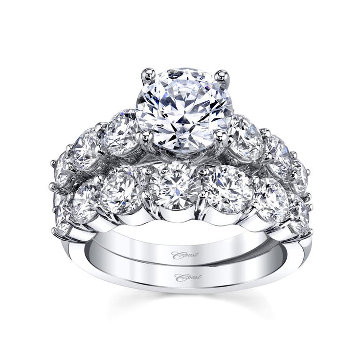 A bold wedding band with a beautiful scalloped profile adorned with over one and a half carats of round brilliant diamonds. This is a real standout