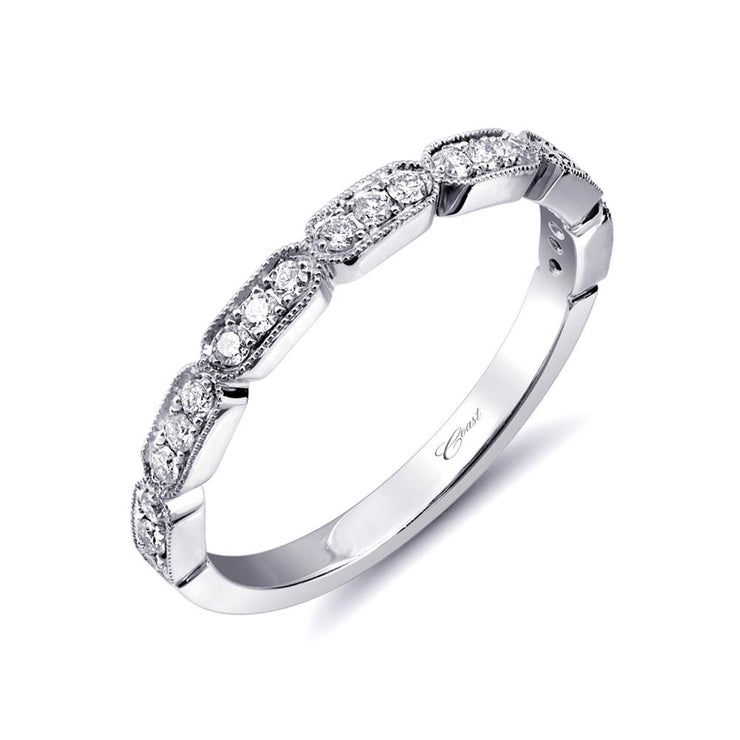 Brilliant pave set diamonds adorn the links along the band. Milgrain detail and a high-polished finish make it truly outstanding.