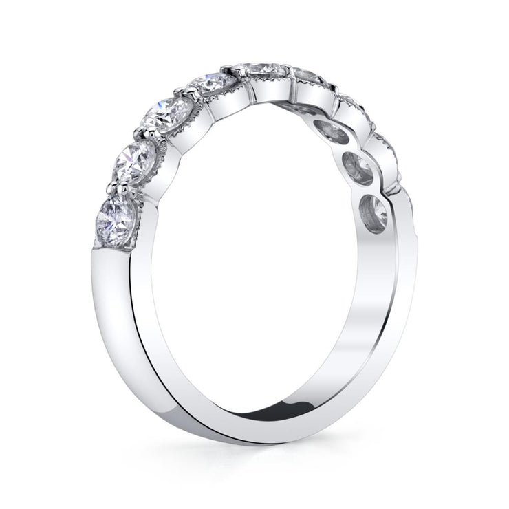 From our Allure Collection, a scalloped wedding band delicately set with round brilliant diamonds and finished with milgrain.