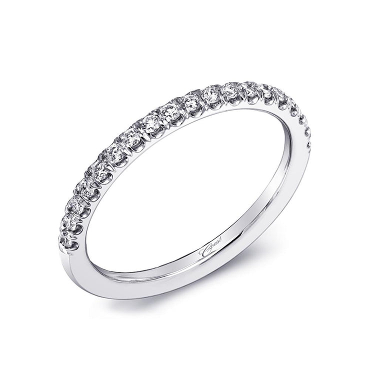 Matching wedding band to LC10020 featuring hand set diamonds across the top of the ring.